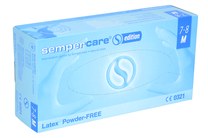 Unsteriler, puderfreier Untersuchungshandschuh aus Naturlatex, mit hautfreundlicher synthetischer Innenbeschichtung, texturiert, mit Rollrand.